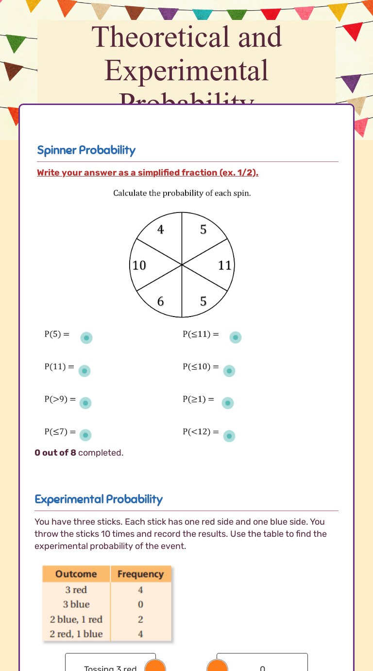 Experimental And Theoretical Probability Worksheet / Pin By Katie Gordon On Probability Statistics Probability Worksheets Theoretical Probability Probability Lessons :